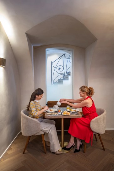 In the very heart of Old Prague, where every corner carries a story, BOOKQUET welcomes you with a cosy lobby and a charming courtyard patio. During the day, you can stop by our bar for a cup of fine coffee, a refreshing cocktail or a glass of wine – and enjoy light bites along with moments of peace and inspiration. As evening falls, the stage opens for PARZIVAL, an exclusive fine dining restaurant led by Michelin-starred Chef Gal Ben Moshe. His tasting menu unfolds like a story, each course a chapter, with wines adding depth and character to the experience. Find your own corner to pause – whether with a favourite book in the patio, or over an exceptional dinner that becomes an unforgettable chapter of your stay. Lobby Bar is open Monday - Friday from 12:00 p.m. - 10:00 p.m.
