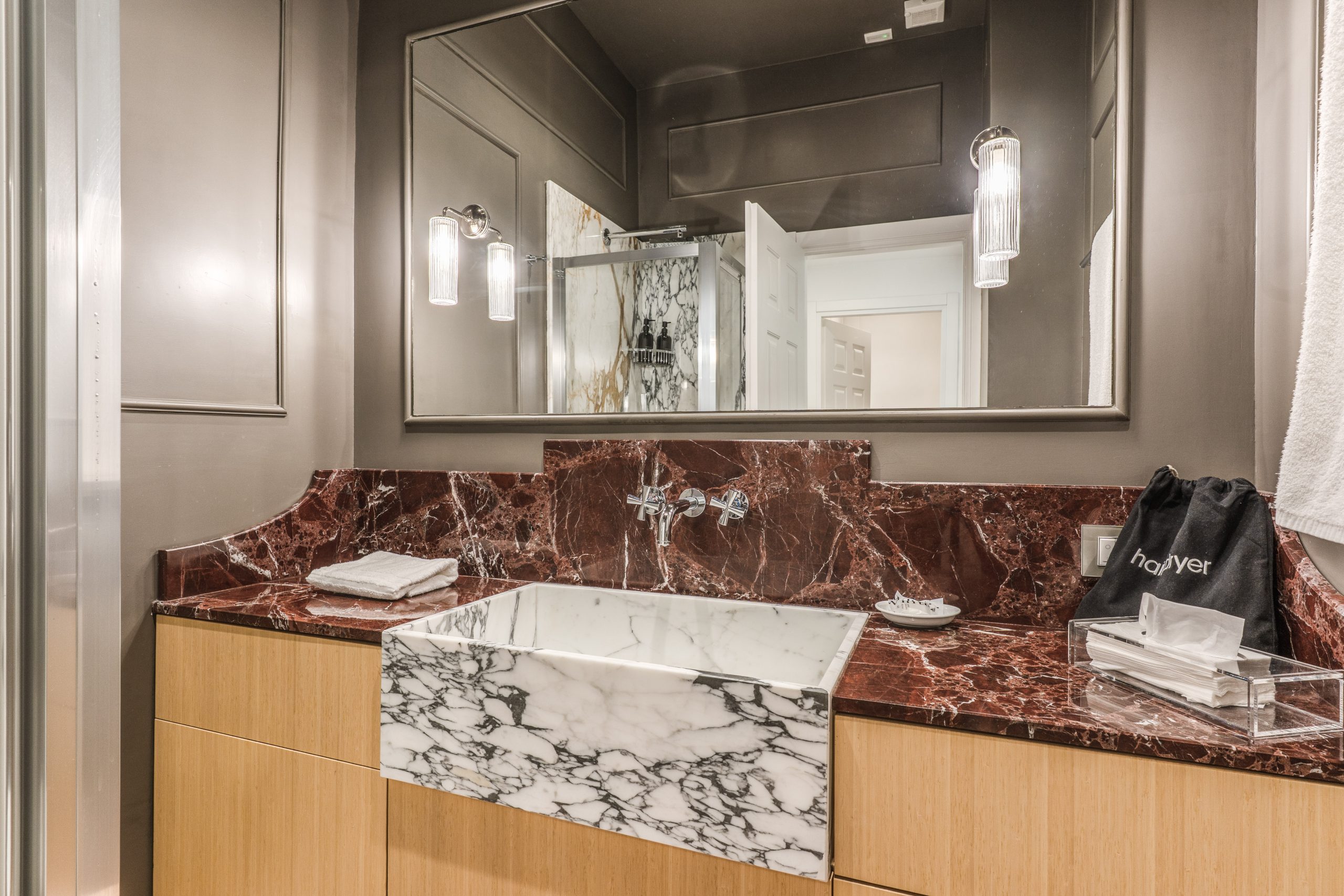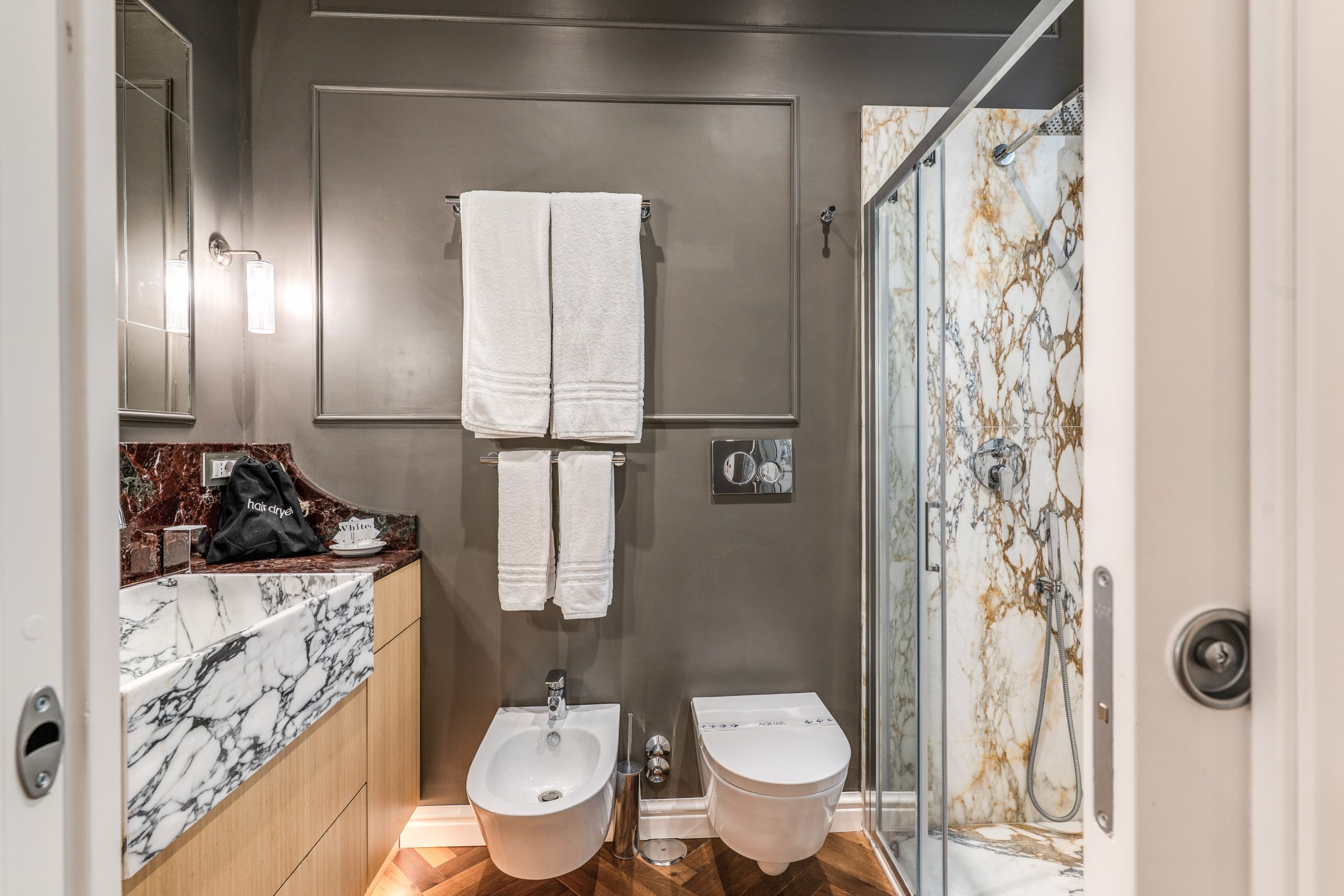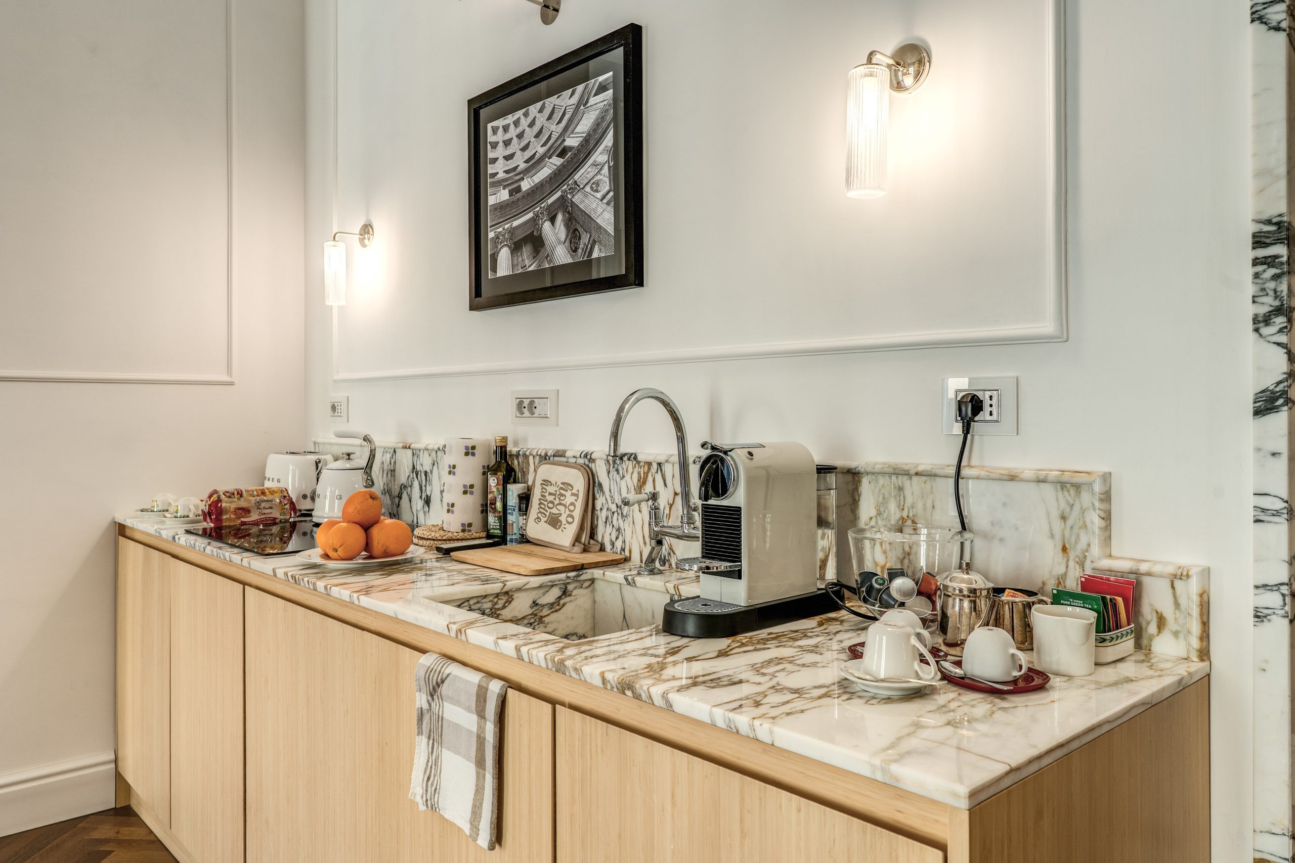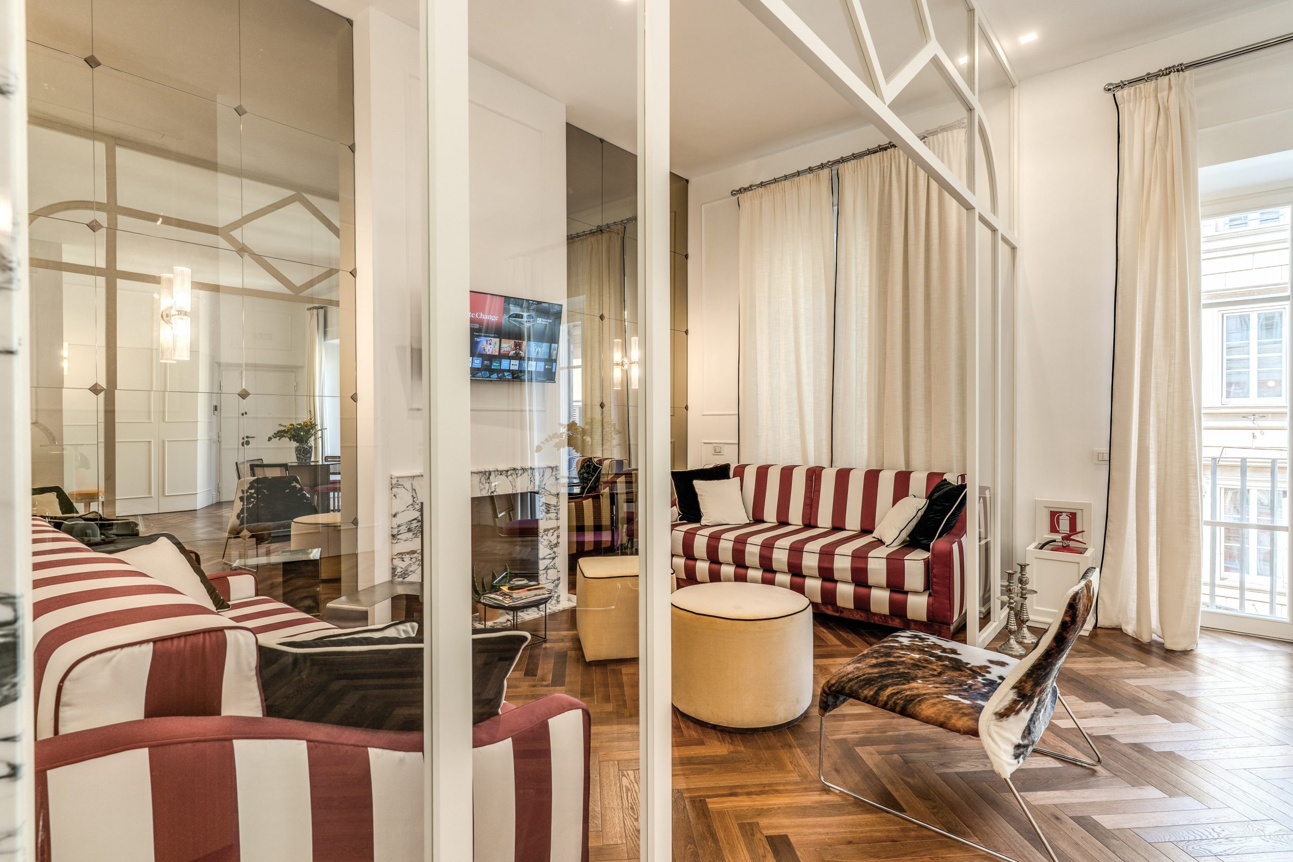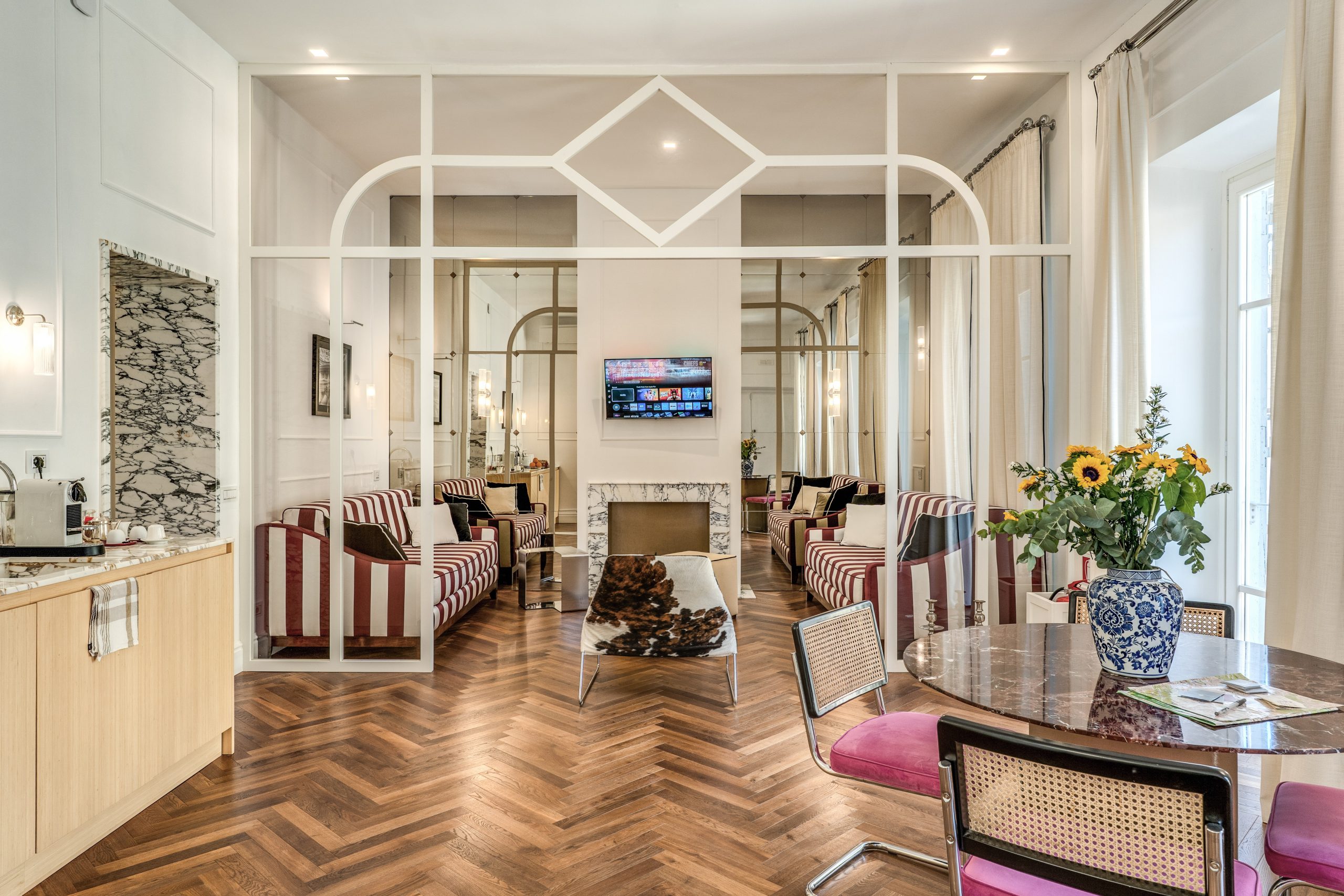 Quiet and bright, it consists of a double bedroom with en-suite bathroom and a double lounge with two single beds making it perfect for a family of two, three or four people. Near the living room we have another bathroom for a total of two bathrooms. Fully air-conditioned, fast WIFI, satellite TV both in the room and in the living room. Explore our photo gallery to discover the elegance of the rooms and its details that combine comfort and contemporary style. Kitchen equipped with dishwasher, microwave oven, electric hob, Nespresso coffee machine with pods, fridge and freezer, washing machine and dryer, iron and ironing board, safe. Availability of service to and from the airport for a fee. Upon your arrival you will find one of our receptionists. Staff available 24 hours.