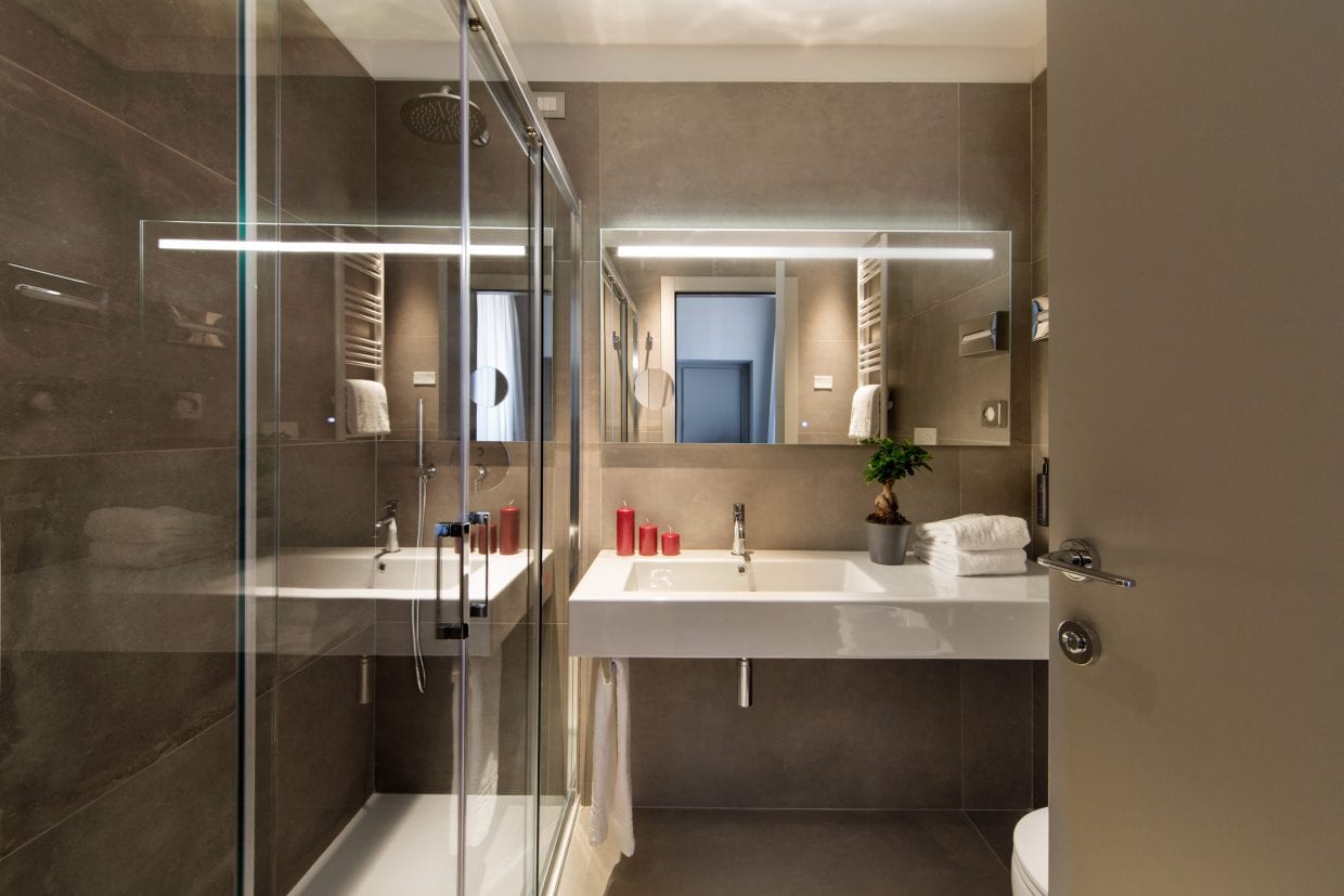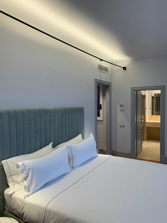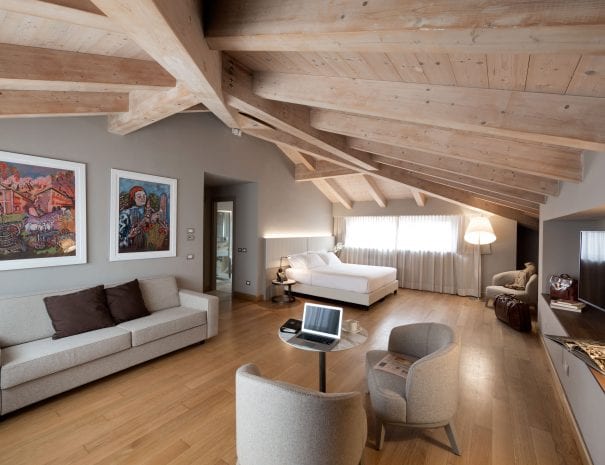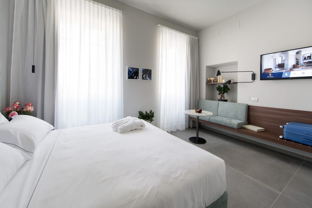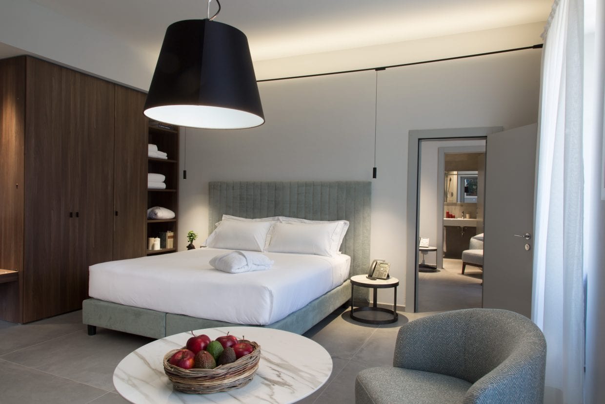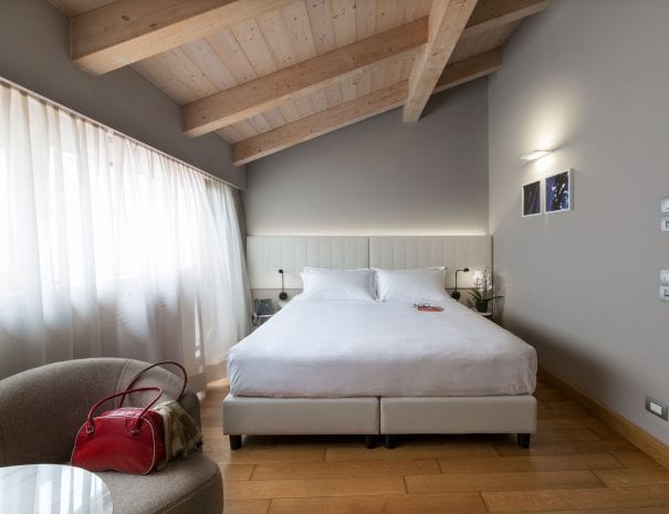 The Deluxe rooms, furnished in a modern style, are equipped with comfortable king size beds (180x200). Inside, some have a sofa that can be transformed into a comfortable sofa bed or a relaxation corner with armchairs if necessary, some with a view of the garden and others with a view of the village. Bathroom with shower more or less large based on the size of the room ranging from 20 to 29 sqm.