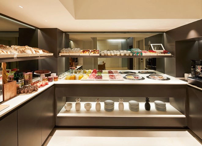 Delicious breakfasts with ingredients that are as nutritious as a broad smile. The hotel features a pleasant dining room presided over by the unusual sculpture by artist Xavier Escribà, which brings color and vitality to the room. Every morning, a full buffet breakfast is served, with various types of bread, local cold cuts, hot dishes such as scrambled eggs, mini chicken sausages, or our crispy bacon. We also have a wide variety of fresh fruits such as watermelon, melon, grapes, kiwi... etc. to add a refreshing touch. To start the day with energy, we offer our orange, pineapple, and peach juice, and for coffee lovers, there is a diverse selection: from Spresso, café latte, cappuccino with a hint of cocoa, etc. And we can't forget about the sweetness with our delicious chocolate or caramel muffins, the cake of the day, and a selection of jams.
