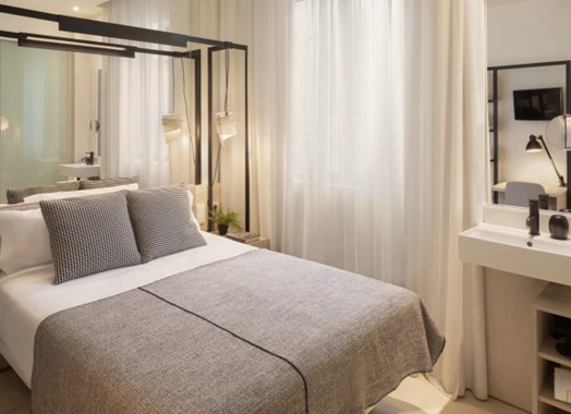 Luminous and ideal for families or friends. Measuring 19,7 sqm / 212 sf, the Superior + rooms are the largest rooms in the hotel. With a maximum capacity of three people, they can fit either a 190x180 double bed or two 190x90 single beds. An rollaway bed 190x90 for single use can accommodate a third guest. The practical and comfortable reading area and the views over the quiet Calle Estruc round out the characteristics of these spacious and functional rooms with their relaxed atmosphere.