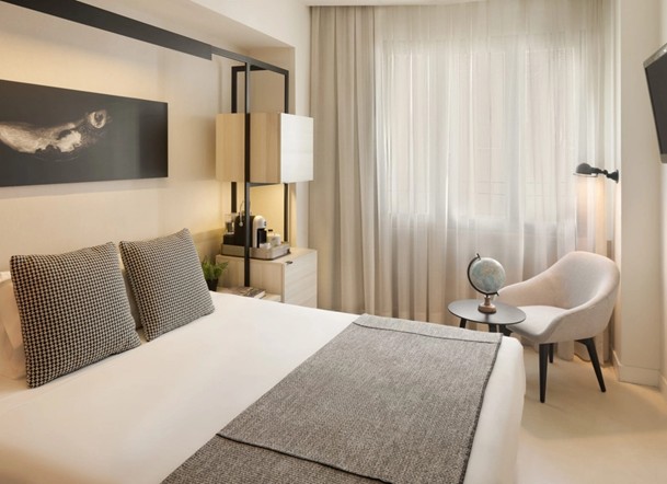Spacious room for several days. The Superior rooms measure 18,4 sqm / 198 sf square meters with a 190x180 double bed or two single beds of 190x90 for up to two people. The majority of them have a bathtub, and all rooms have a relaxing reading area. All these features make these rooms ideal for those looking for space and comfort in which to relax.Their décor follows the modern, Nordic, minimalist, and functional line of the rest of the hotel, which gives it a surprisingly inviting and peaceful atmosphere right in the heart of the hustle and bustle of Barcelona.