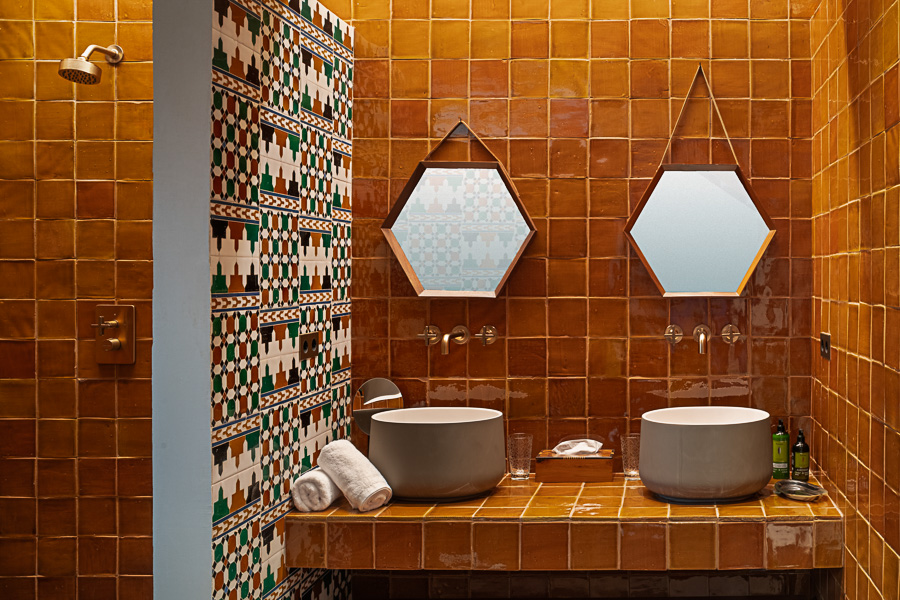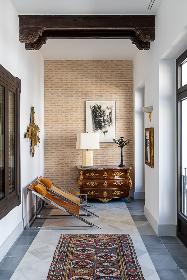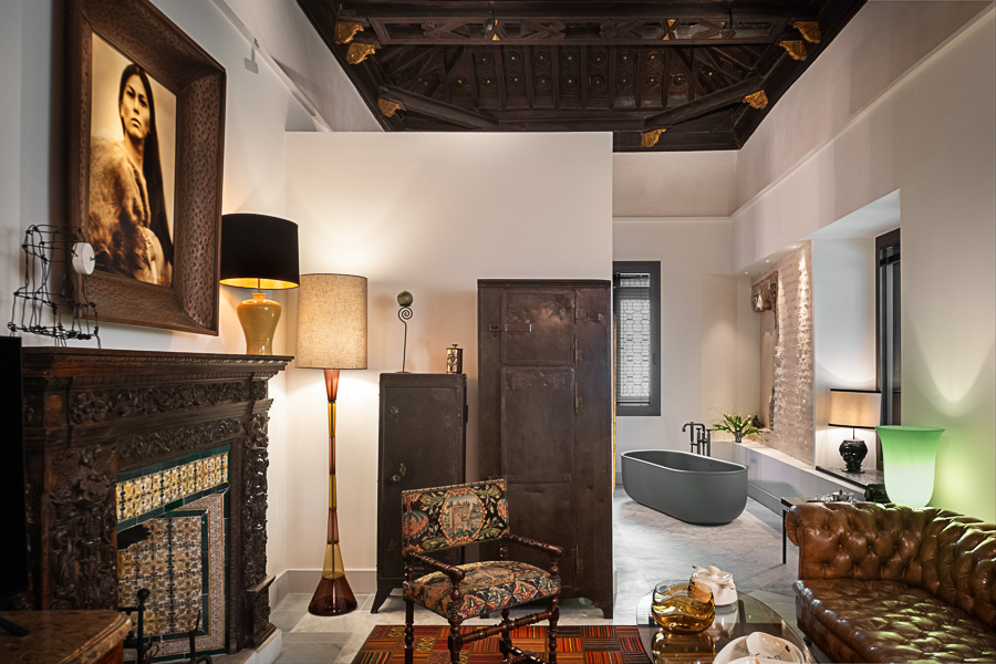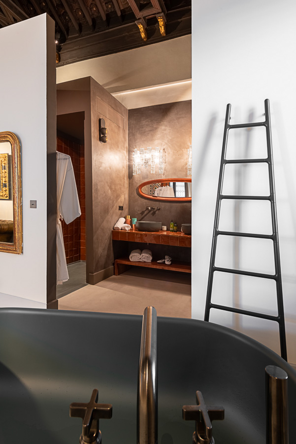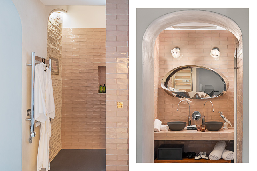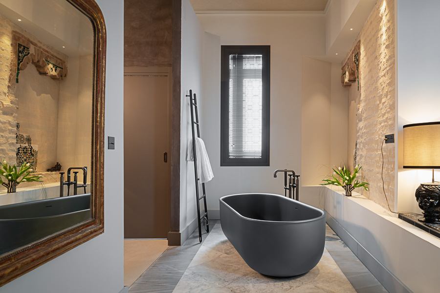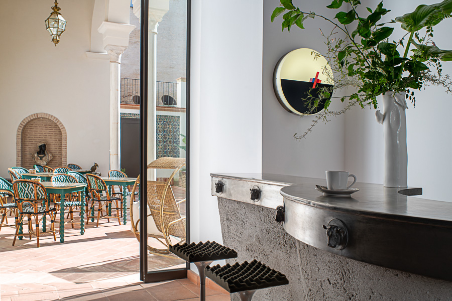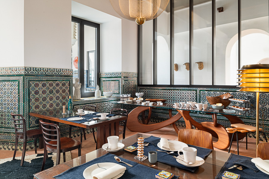 Two years, two!, to design the project. To rebuild what was there but with respect, to restore a historic building in Seville without foundations and at the same time modernize it. To preserve its defining characteristic: thousands of tiles from different eras… To create 16 spacious bathrooms, a charming and relaxing hammam, a kitchen to welcome our guests, the heart of the house and available when the entire hotel is booked.