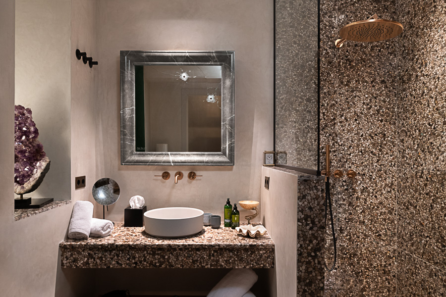 Each of the 14 rooms are unique but all have air conditioning, underfloor heating, Wi-Fi, international television, telephone, minibar, Nespresso coffee machine, kettle, kimonos, slippers and L'Occitane toiletries. Smoking is not allowed in the rooms , only outdoors in the common areas.